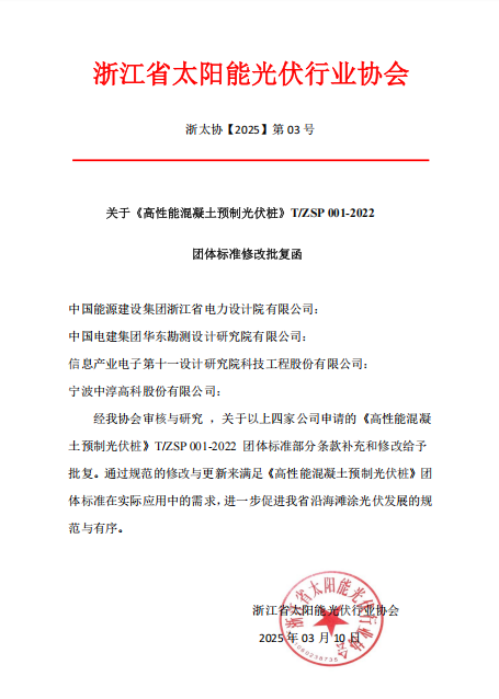 关于《高性能混凝土预制光伏桩》 团体标准修改批复函