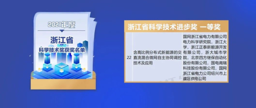 本年度浙江省科学技术进步奖一等奖获奖名单中,由正泰新能源参与完成的“含高比例分布式新能源的交直流混合微网自主协同调控技术及应用”项目成果实现了从理论、技术到工程实践的创新,为以新能源为主体的电力系统接入更多分布式可再生电源提供了系统的解决方案,为我国“双碳”战略的全面实施提供坚实理论与技术支撑。成果的国内外广泛应用表明我国在新能源微电网自主协同调控技术已走在世界前列,对促进新能源的规模化消纳,应对全球气候变化和实现绿色可持续发展具有重大意义。