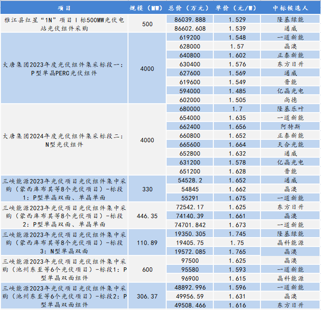 公开信息整理,未公开总价和中标容量的未纳入统计范围内