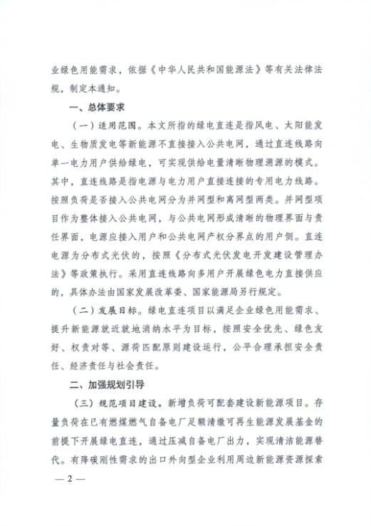 项目范围:新增负荷可配套建设新能源项目;存量负荷在已有燃煤燃气自备电厂足额清缴可再生能源发展基金的前提下开展绿电直连;有降碳刚性需求的出口外向型企业利可用周边新能源资源开展存量负荷绿电直连;接网或消纳受限无法并网的项目可变更手续后开展绿电直连。