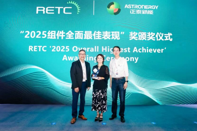 今日上午,国际权威第三方检测机构可再生能源测试中心(RETC)正式发布2025 PV Module Index Report (PVMI)。正泰新能ASTRO N系列组件凭借在质量、性能、可靠性三个维度的卓越表现,从全球众多参评企业中脱颖而出,再次获评光伏组件制造领域2025年度“全面最佳表现”(Overall Highest Achievers)奖。RETC总裁兼首席执行官 Cherif Kedir,正泰新能常务副总裁、首席可持续发展官黄海燕,正泰新能全球产品技术服务总经理周盛永参与颁奖仪式。