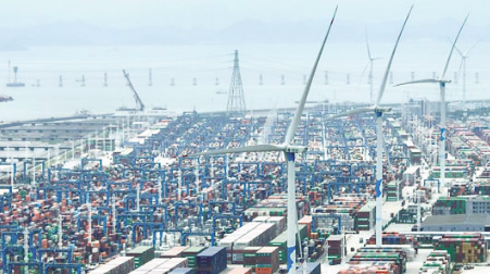 6月23日,随着3号风机叶片徐徐转动,梅山港区又一台风机成功并网投用,标志着宁波舟山港梅山低碳码头示范工程风光储一体化项目全面建成投用,这是浙江省首个“绿电码头”。