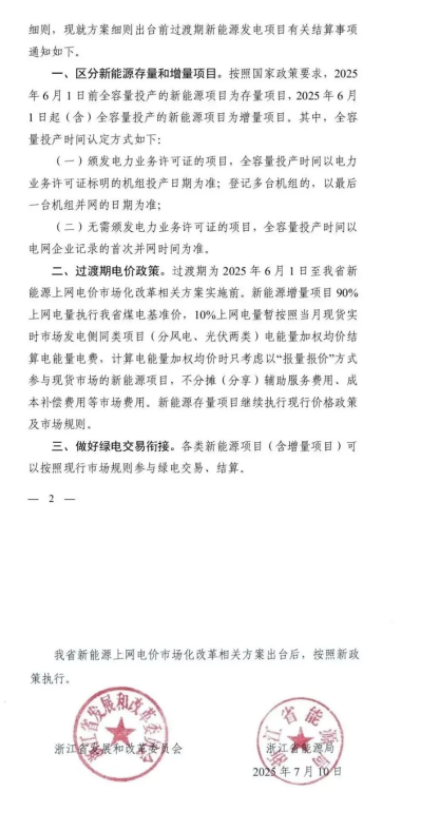7月11日,浙江省发改委、能源局发布《关于做好新能源上网电价市场化改革过渡期有关结算事项的通知》(以下简称《通知》)。