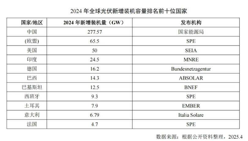 中国在2024年的光伏新增装机容量达到了277.57GW,增速为28%,自2013年起已连续12年在全球光伏新增装机规模中位居首位。