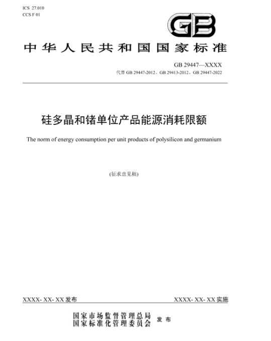 日前,全国标准信息公共服务平台发布关于征求《硅多晶和锗单位产品能源消耗限额》等3项强制性国家标准(征求意见稿)意见的通知。
