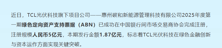 TCL光伏科技成功发行首单工商业光伏ABN,全力助推绿色能源高质量发展