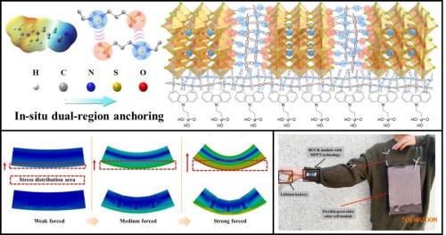 针对这一挑战,西安交通大学电信学部电子学院吴朝新、董化教授团队提出了一种原位双区域锚定策略。团队设计合成了两性离子凝胶单体VIPS,其咪唑基团可与埋底界面的自组装单分子层(SAM)形成π-π共轭作用,磺酸基团则与钙钛矿中的Pb2+发生强配位作用,实现了在钙钛矿晶界和埋底界面的选择性锚定。经热激活后,VIPS原位聚合形成柔性动态网络,既能释放晶格内应力和界面应力,又能抑制裂纹扩展,同时阻挡水氧侵蚀和铅离子泄漏。