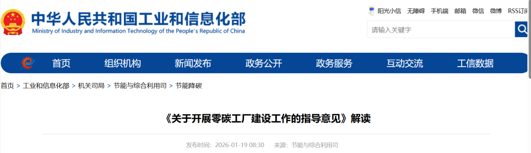 为贯彻落实国务院办公厅《制造业绿色低碳发展行动方案(2025—2027年)》,深挖工业和信息化领域节能降碳潜力,带动重点行业领域减碳增效和绿色低碳转型,培育发展新质生产力,工业和信息化部、国家发展改革委、生态环境部、国务院国资委、国家能源局等五部门近日联合印发《关于开展零碳工厂建设工作的指导意见》(工信部联节﹝2026﹞13号,以下简称《指导意见》)。工业和信息化部节能与综合利用司负责同志就《指导意见》出台的背景和意义、主要内容等回答了记者的提问。