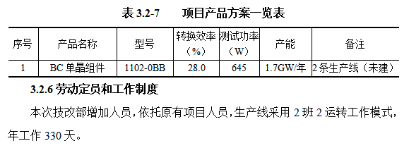 技改完成后,该项目将形成年产1.7GW BC组件的产能,全厂总产能仍维持5GW(含3.3GW Topcon组件和1.7GW BC组件)不变。