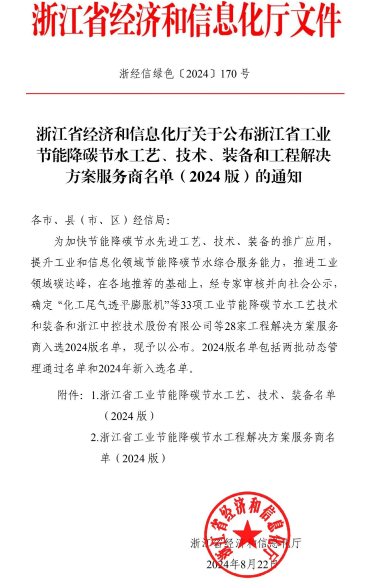 此外,凭借其在节能降碳领域的突出贡献和创新技术,一道新能成功入选浙江省工业节能降碳节水服务商名单,标志着公司在推动工业绿色转型、实现可持续发展方面取得了显著成效。