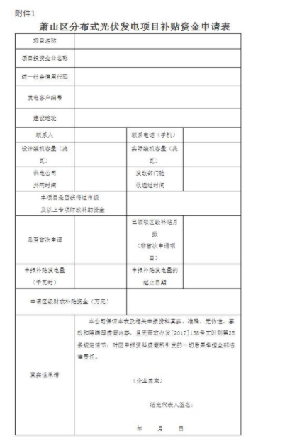 附件:1.萧山区分布式光伏发电项目补贴资金申请表