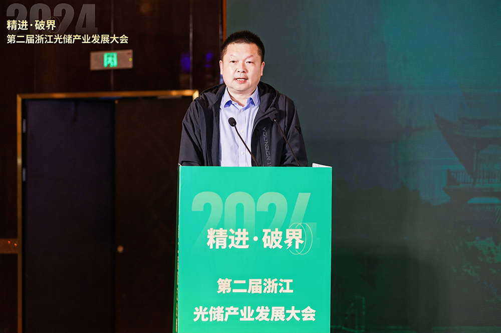 浙江省能源局新能源处一级主任科员杜国伟在致辞中介绍了浙江光伏储能的发展情况:“2023年,浙江累计光伏装机超过3000万千瓦,最大出力接近2000万千瓦,成为迎峰度夏和迎风度冬期间的重要支撑电源之一。截至2024年2月底,全省已建成新型储能项目共计138万千万。其中,电源侧项目17万千瓦,电网侧项目45万千瓦,用户侧项目76万千瓦。取得如此成绩既有政策红利的持续释放,也有市场需求的强劲拉动,更有企业技术创新的积极推动。”