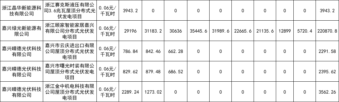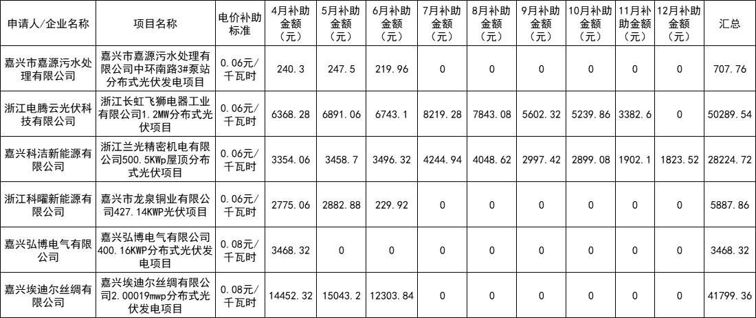 附件:2023年第一批嘉兴市本级分布式光伏发电应用项目电价补助资金明细