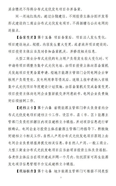 对于利用农业种植设施、畜禽养殖设施、林业种植培育设施、渔业养殖设施等设施建设的光伏发电项目,交流侧装机容量在6兆瓦及以上的归于集中式光伏电站管理,纳入全省集中式光伏项目建设计划后实施;交流侧装机容量低于6兆瓦的按照一般工商业分布式光伏项目管理。