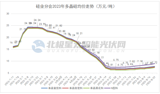 8月23日,硅业分会发布最新多晶硅价格,继续全线上涨。这是7月份以来,多晶硅价格第6次整体上调,也是n型料第8次涨价。