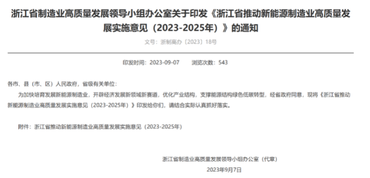 浙江省推动新能源制造业高质量发展实施意见(2023-2025年)