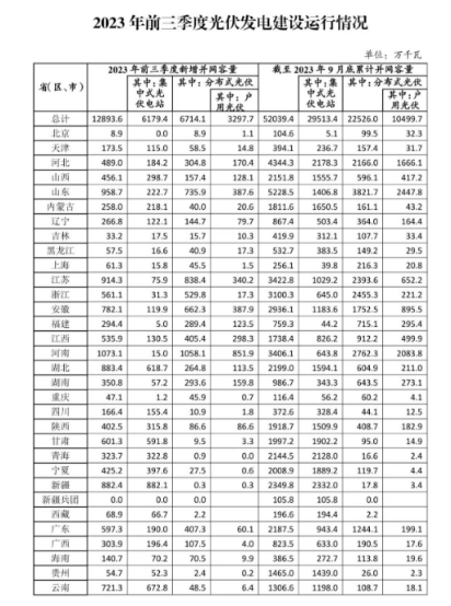 11月3日,国家能源局公布2023年前三季度光伏发电建设运行情况。