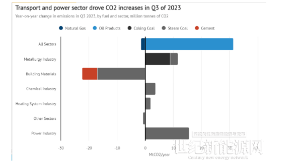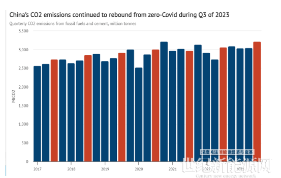 根据报告,2023 年第一、第二季度有所增长,第三季度,二氧化碳排放量继续反弹,估计同比增长 4.7%,但 9 月份放缓至 1%。