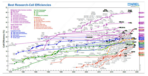 据悉,全球光伏行业最权威的电池效率排名表只有两个,一是澳大利亚新南威尔士大学马丁·格林教授主导的《太阳能电池效率纪录表》,二是美国国家可再生能源实验室(NREL)的《太阳电池最高研究效率图》。这两个排名表只收录全球8家国际权威认证机构检测认证的最高电池效率。