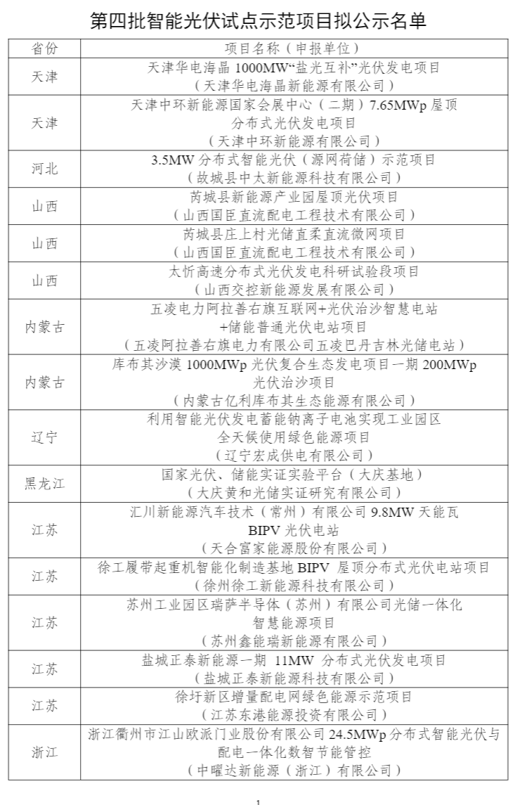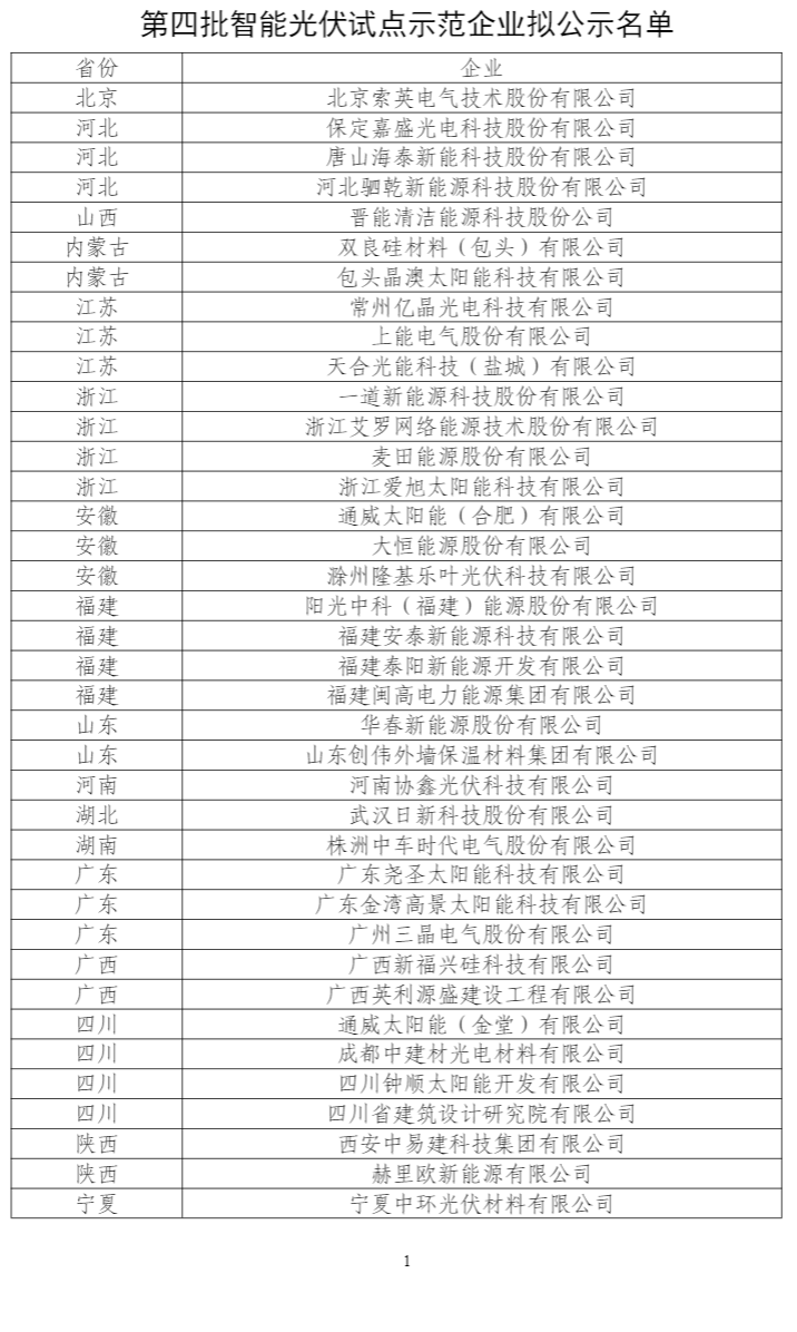 1月29日,经省级有关部门推荐、专家评审等程序,工信部公示了第四批智能光伏试点示范企业和第四批智能光伏试点示范项目名单。