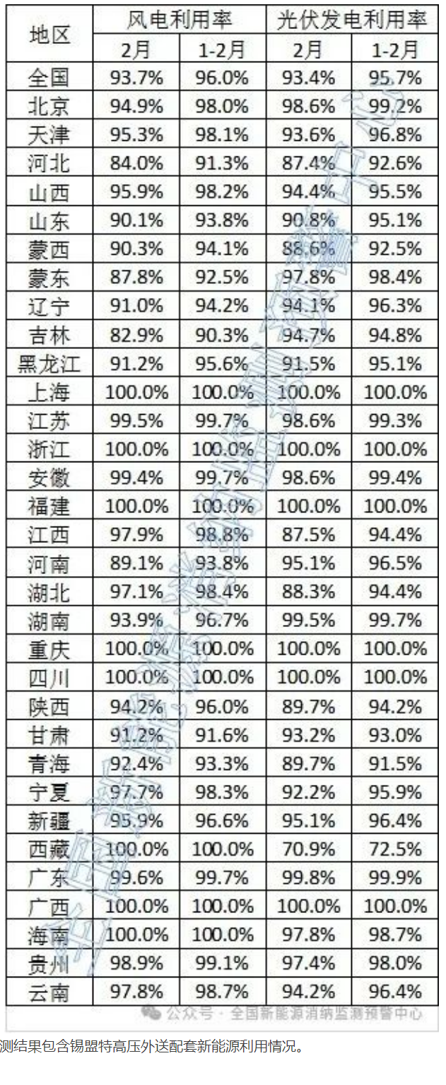 2月全国光伏发电利用率为93.4% 首次跌破95%