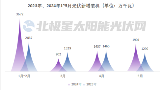 太阳能发电方面,1-5月新增7915万千瓦,仅5月新增装机1904万千瓦,同比增长47.6%。