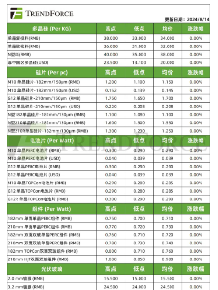价格趋势:本周各类型组件价格持稳,但后续仍有一定内卷压价的出货压力。