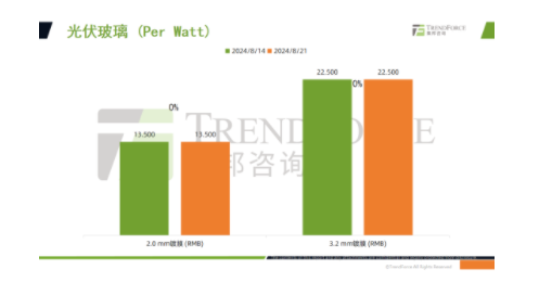 2.0mm镀膜光伏板玻璃价格保持在 RMB13.5/㎡;3.2mm镀膜光伏板玻璃人民币为 RMB22.5/㎡。
