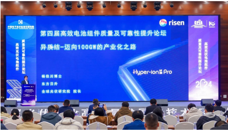 在高效电池组件质量及可靠性提升论坛中,东方日升全球光伏研究院院长杨伯川博士发表题为《异质结-迈向100GW的产业化之路》的主题演讲,围绕异质结电池技术的技术路线、性能表现等话题,分享了东方日升的实践经验及未来规划,充分展现了东方日升在该领域的前瞻性与核心竞争优势。