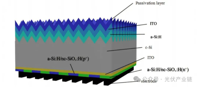 结构特点:HBC电池采用异质结技术,与背接触结构相结合。为了实现高效的载流子收集,这种结构通常在电池背面形成异质结。