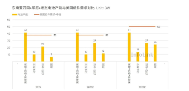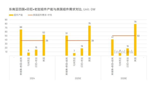 至于组件部分,仅从产能角度来看,美国本土的组件产能理论上已能满足需求。然而,考虑到有效产能和实际开工表现,短期内仍须依赖部分进口量补充市场空缺,而印度尼西亚、老挝、印度甚至马来西亚等地或许仍具备输美机会。