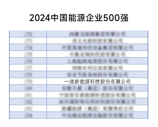 近日,《中国能源报》发布2024中国能源企业500强榜单(以下简称“500强”),凭借业内领先的N型技术和稳健增长的公司业绩,一道新能蝉联入选“2024中国能源企业500强”榜单。