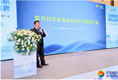 东方日升产品中心总监宋毅锋发表《东方日升多场景光伏产品解决方案》主题演讲。作为异质结技术领域的佼佼者,东方日升异质结组件现阶段在全球范围内实现了最高的量产功率,只有将功率的落地作为核心目标,我们才能真正为客户创造价值,推动光伏产业的可持续发展。宋总重点介绍了东方日升异质结伏曦Pro产品,该产品双面率高,功率温度系数低,通过多项IEC严苛测试,适用多样化场景且具备高可靠性。同时该产品通过实证数据表明能够带来更高的发电量增益以及更高的可靠性,适用于多种场景。