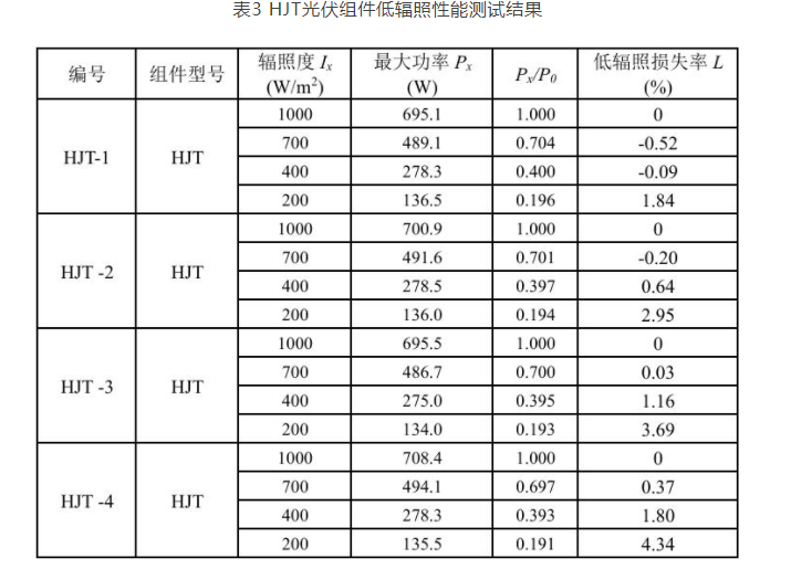 表1 BC光伏组件低辐照性能测试结果