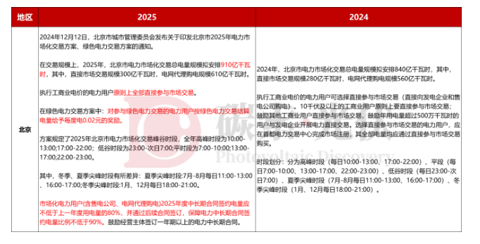 2024年12月12日,北京市城市管理委员会发布《关于印发<北京市2025年电力市场化交易方案、绿色电力交易方案>的通知》。交易规模方面,2025年,北京市电力市场化交易总电量规模拟安排910亿千瓦时,其中,直接市场交易规模300亿千瓦时,电网代理购电规模610亿千瓦时。