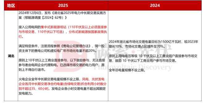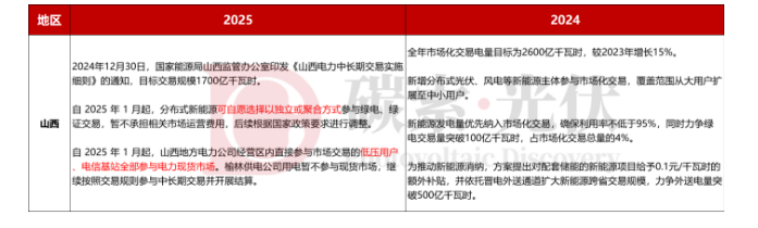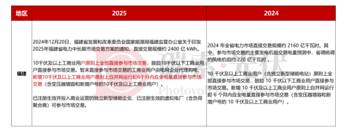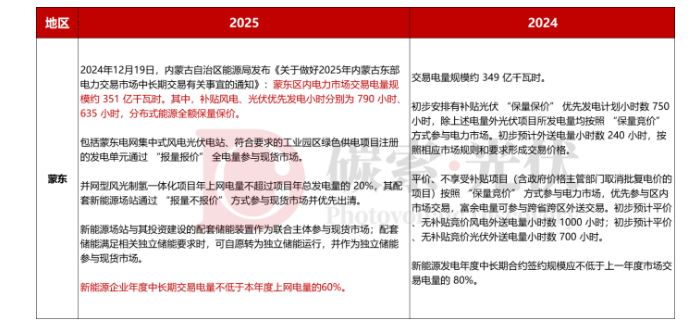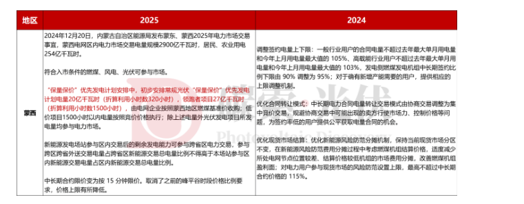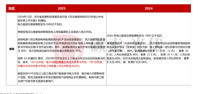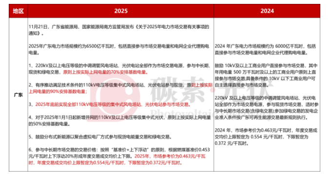 2025年取消了新能源分季节比例;明确了入市比例。省调直调光伏省内市场化电量比例统一增加到60%,风力发电场站省内市场化电量比例暂定为30%。