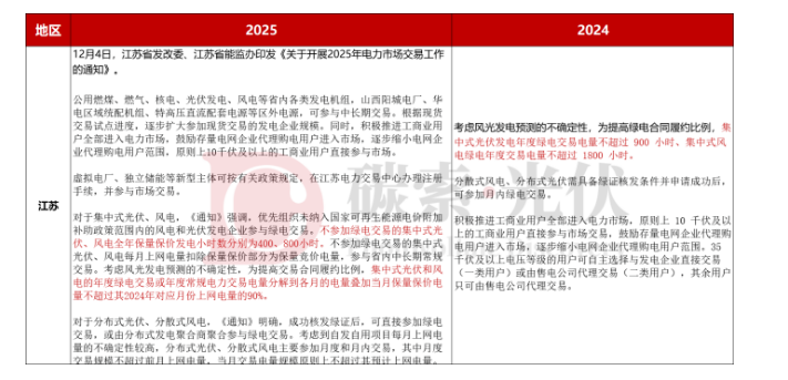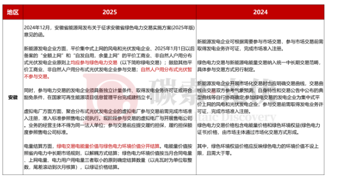 绿电交易方面:虽然2024年和2025年都鼓励绿电交易,但2025年方案对齐了国家绿证核发范围、范围有所扩充,细化了交易出清方式,环境价值不再设置上限。