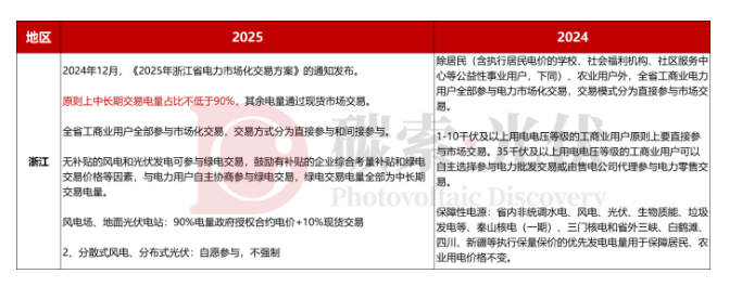 2024年12月,《2025年浙江省电力市场化交易方案》的通知发布,规定原则上中长期交易电量占比不低于90%,其余电量通过现货市场交易。