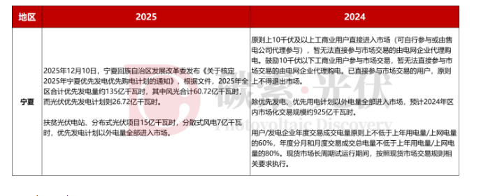 2025年12月10日,宁夏回族自治区发展改革委发布《关于核定2025年宁夏优先发电优先购电计划的通知》,根据文件,2025年全区合计优先发电量约135亿千瓦时,其中风光合计60.72亿千瓦时,而光伏优先发电计划则26.72亿千瓦时。
