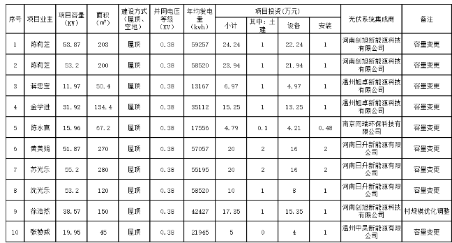 一、本批次共有居民家庭屋顶分布式光伏发电项目(变更)30个,总装机容量936.65kWp,年平均发电量1026409kWh。项目情况详见附表。
