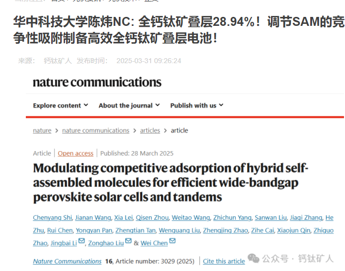 竞争吸附调制:通过调制混合自组装单分子的竞争吸附,科研团队优化了钙钛矿材料的表面特性和界面质量。