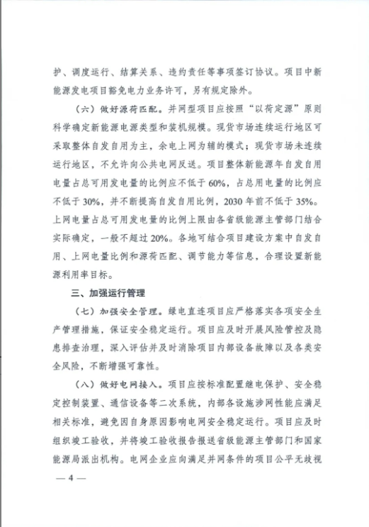 省级主管部门需进一步细化就近就地消纳距离、上网电量比例、退出机制等具体要求,引导项目科学合理评估需求,避免出现实际运行与设计方案出现较大偏差、新能源消纳不及预期等情况。