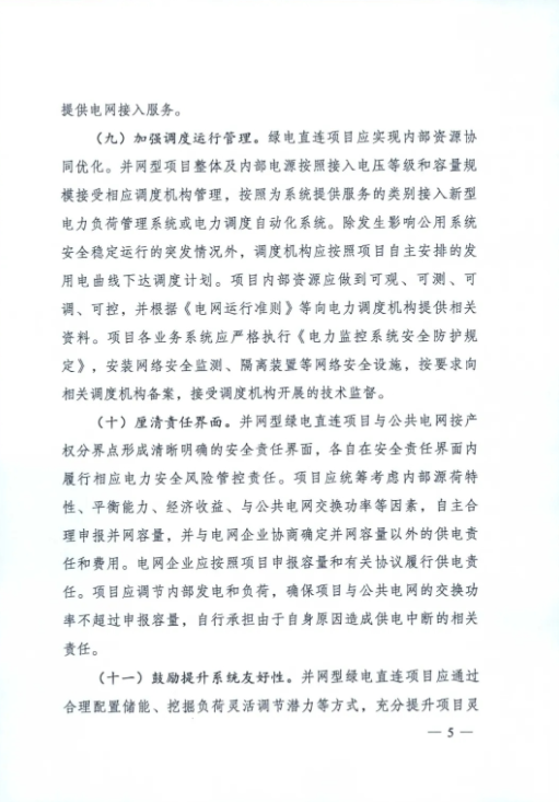 责任划分:并网型绿电直连项目与公共电网按产权分界点形成清晰明确的安全责任界面。项目应统筹考虑内部源荷特性、平衡能力、经济收益、与公共电网交换功率等因素,自主合理申报并网容量,并与电网企业协商确定并网容量以外的供电责任和费用。