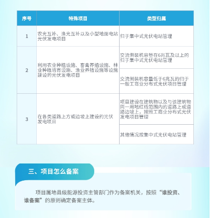 关于特殊项目如何归属,《细则》明确如下:对于在各类道路上方或边坡上建设的光伏发电项目,若项目建设在建筑物以及与该建筑物同一用地红线范围内的道路上或道路边坡上,按照工商业分布式光伏发电项目管理,其他情况按集中式光伏电站管理。