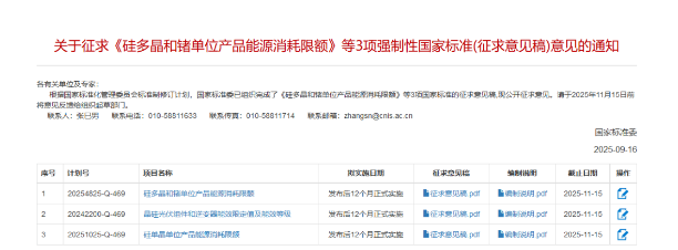 日前,全国标准信息公共服务平台发布关于征求《硅多晶和锗单位产品能源消耗限额》等3项强制性国家标准(征求意见稿)意见的通知。
