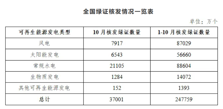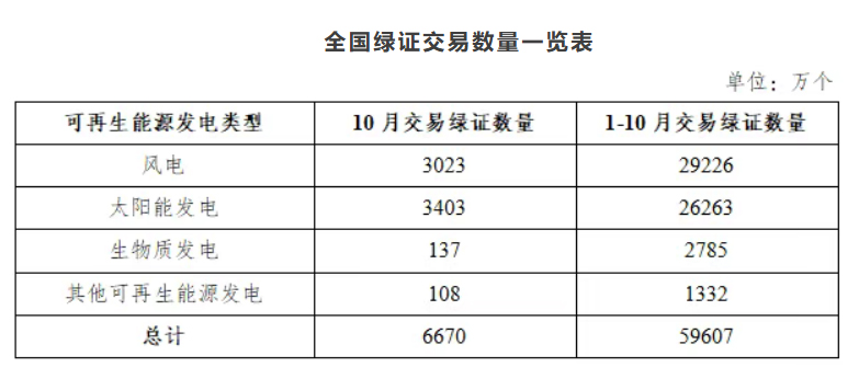 2025年10月,全国交易绿证6670万个,其中绿色电力交易绿证2299万个。2025年1—10月,全国交易绿证5.96亿个,其中绿色电力交易绿证2.02亿个。