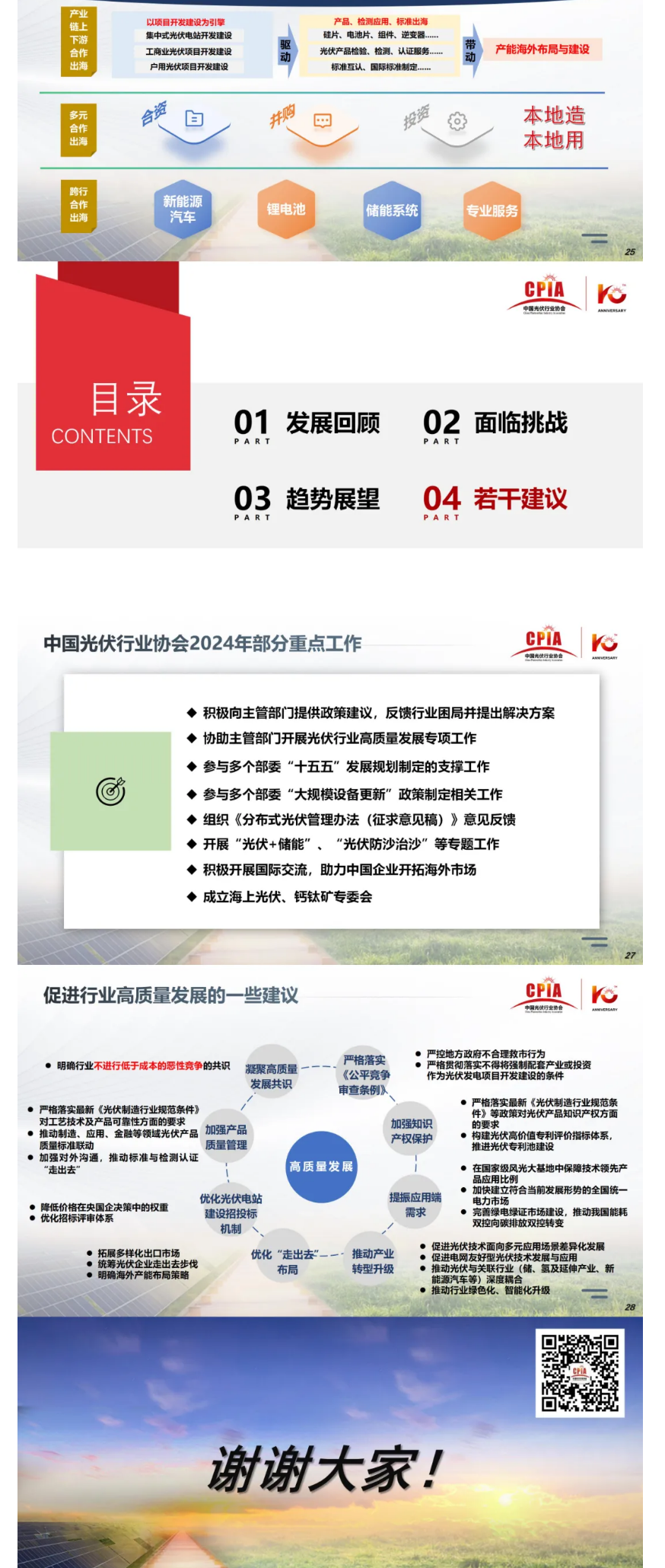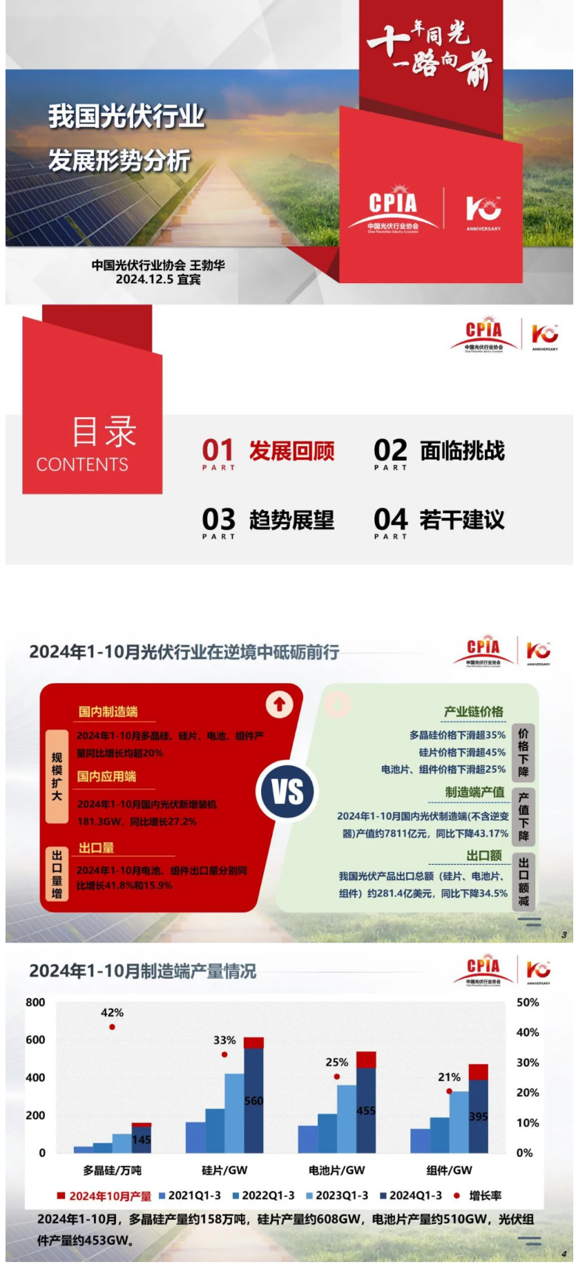 本届大会以“跨越周期 创绿未来”为主题,中国光伏行业协会名誉理事长王勃华出席会议并作“我国光伏行业发展形势分析”报告。