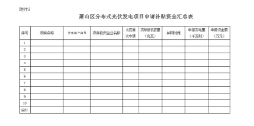 附件:1.萧山区分布式光伏发电项目补贴资金申请表
