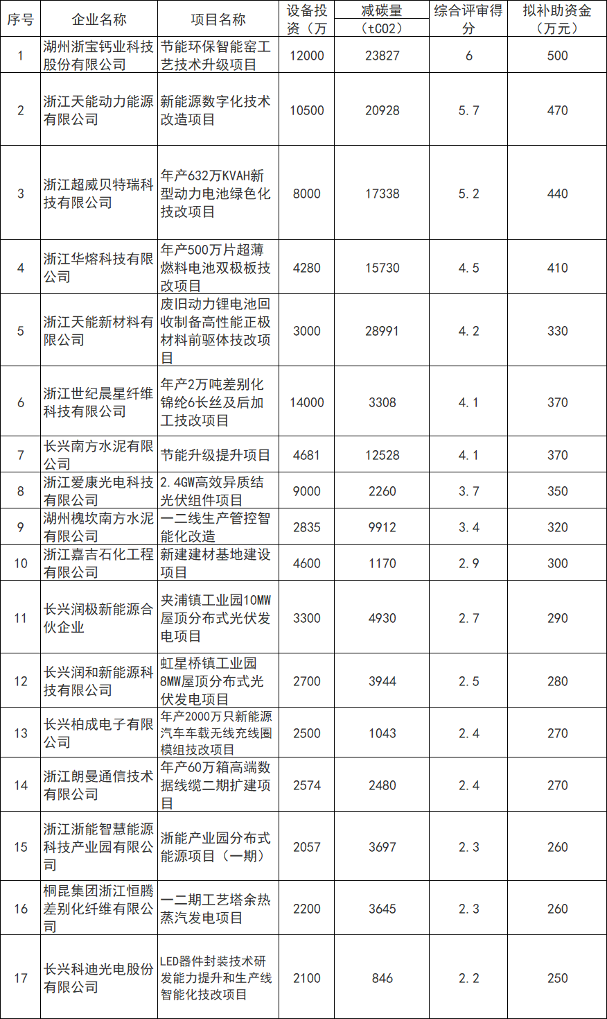 根据《关于公布2022年度生产制造方式转型示范项目计划实施名单的通知》(浙经信投资〔2022〕55号)、《关于下达2022年省工业和信息化专项资金的通知》(浙财建〔2022〕27号)文件要求,经企业申报、第三方评估、专家评审、部门会商等程序,决定将湖州浙宝钙业科技股份有限公司节能环保智能窑工艺技术升级项目等17个项目列入2022年度省生产制造方式转型示范项目(绿色化)支持名单,现予以公示。