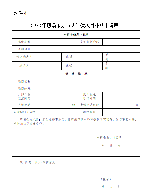 1.2022年慈溪市分布式光伏项目补助申请表(附件4);